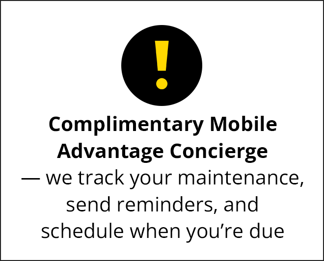 We track mileage/time intervals and send prompts before you’re due. You can confirm via text or email and we’ll get you scheduled.